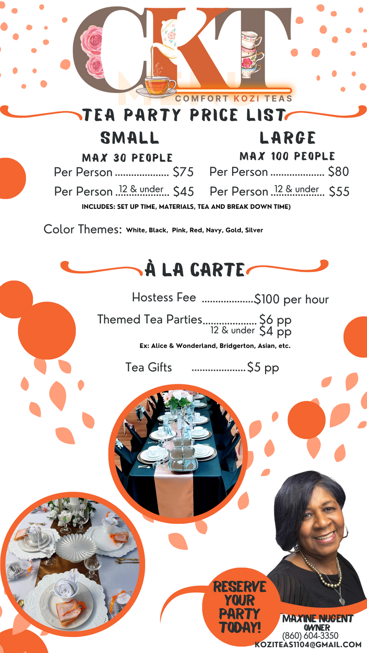 Join us for a sophisticated or just a relaxing tea experience! We cater tea parties in the Greater Hartford area, offer tea gift boxes and host a tea membership club.