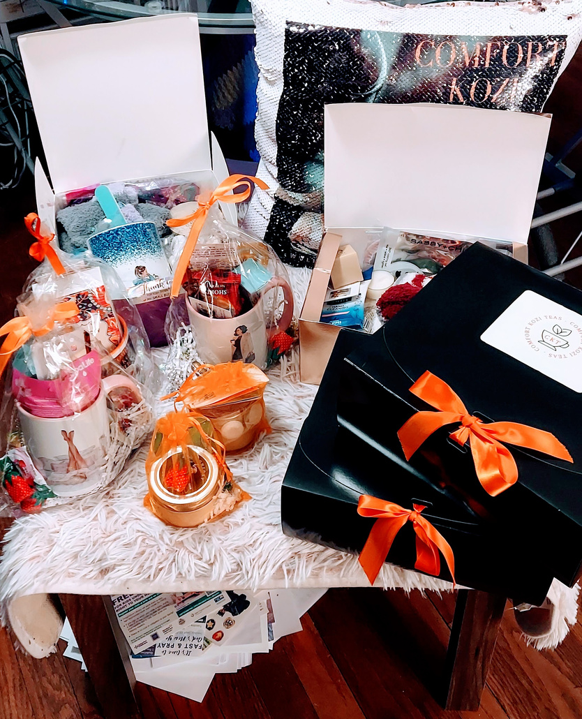 Send your favorite tea lover everything they need to enjoy a cozy tea at home. Customizable boxes include items like teacups, tea bags, candles, booties, spoons, cookies and more.